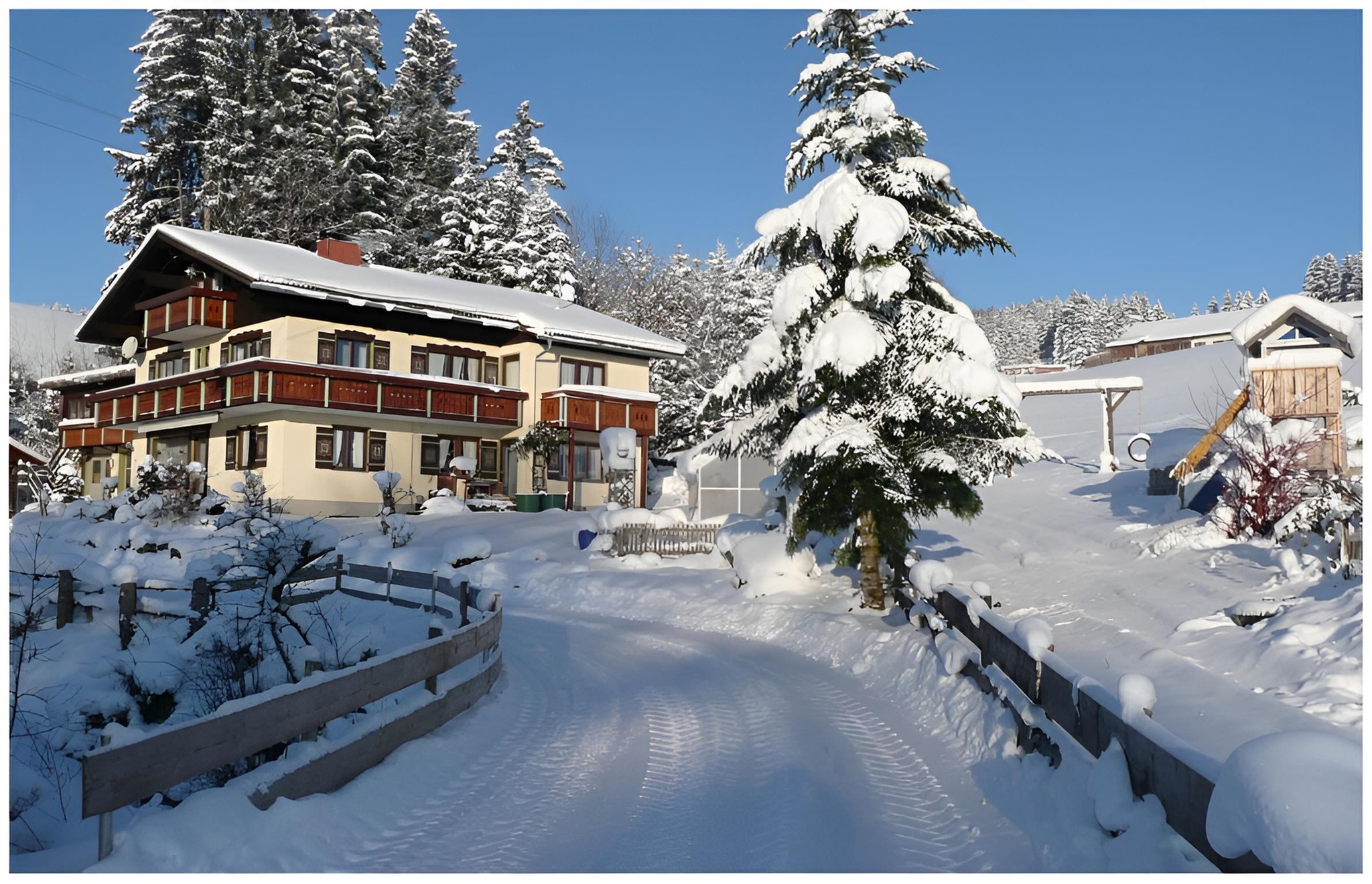 Direkt vom Haus führen traumhafte Spazier- und Wanderwege in die voralpenländische Umgebung. Ganz in der Nähe lädt der Große Alpsee zum Baden, Segeln, Surfen und Angeln ein. Ob im Winter zum Skilaufen oder im Sommer zum Bergwandern – Lifte und Bergbahnen sind nicht weit entfernt. Zahlreiche gespurte Loipen erwarten Langläufer und Skater. Auch Biker kommen voll auf ihre Kosten, sowohl mit als auch ohne Motor.
